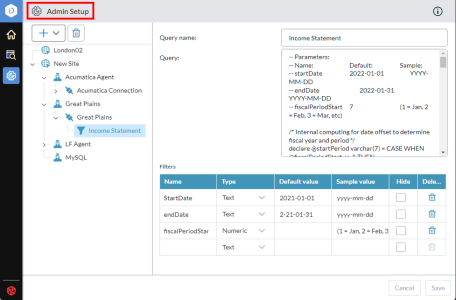 - The Admin Setup panel which contains a tree of your Data Integration resources.