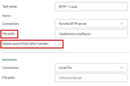 - When using this option with SFTP, the following additional options are available through File path: